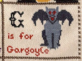 The final pic is a small freebie from The Stitcherhood blog which I found via the Needlecraft Haven Forum in their February challenge. I stitched it twice with a subtle difference. Now all I need to do is find some black ribbon with hearts or maybe some thick lace and decide how to frame it.