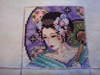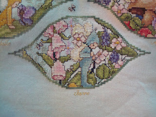 Debbie's theme was Fairies and Goddesses. I was the last to stitch on this one and chose Sweetpea Fairy (top right) because (a) she fitted the box left and (b) she matched the others in blingability!