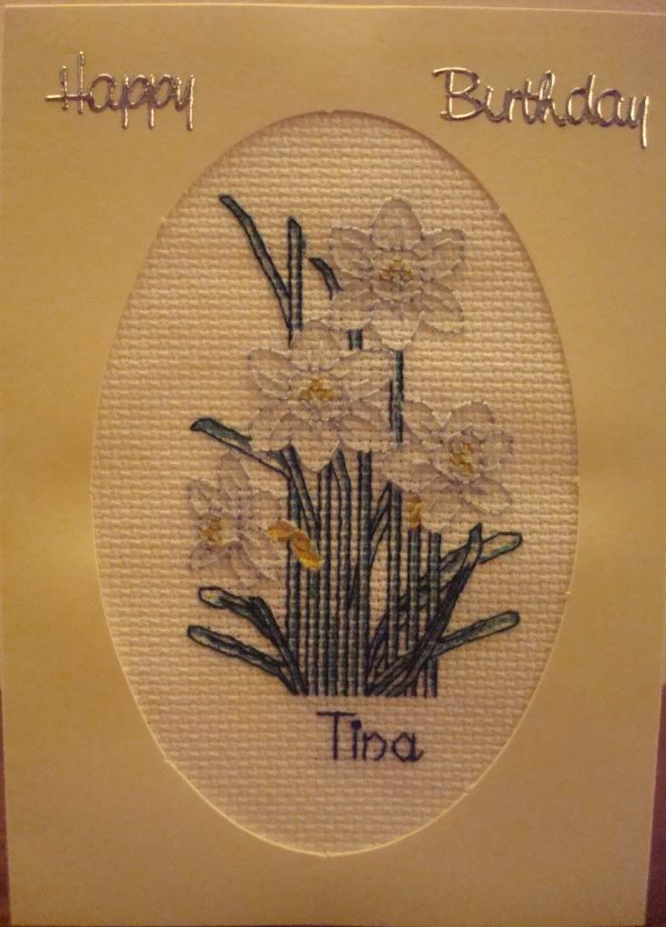 Each one of your beautifully stitched floral cards are so special. Ooooh...I love the gorgeous sampler that Nicola sent to you for your very FIRST sampler. How kind of her. Hope that you love every minute of stitching it!
