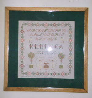 From left is the L*K chart sent to me in a giveaway from Sarah, in the centre is the Twisted Threads design sent to me by Kath to celebrate her 30th Anniversary and on the right is the San Man design, also sent by Kath. All three are stitched on pieces of the yellow evenweave Kath included in her parcel. Thanks ladies!