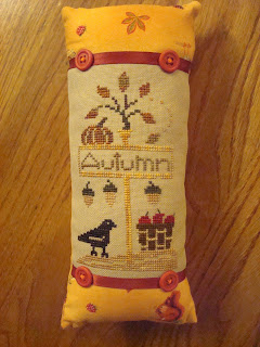 Our theme was Autumn and I found two great designs from Erica Michaels on the Rainbow Gallery website. I just couldn't choose between them so I stitched both: