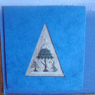 I've stitched all of three of the blues and most of the lightest blue, you can really see the design taking shape now. Of course, those four colours are actually eight because it's a Teresa Wentzler which means Blended Threads! This was intended as a Birth Sampler for the Small Boy, he's only seven after all!