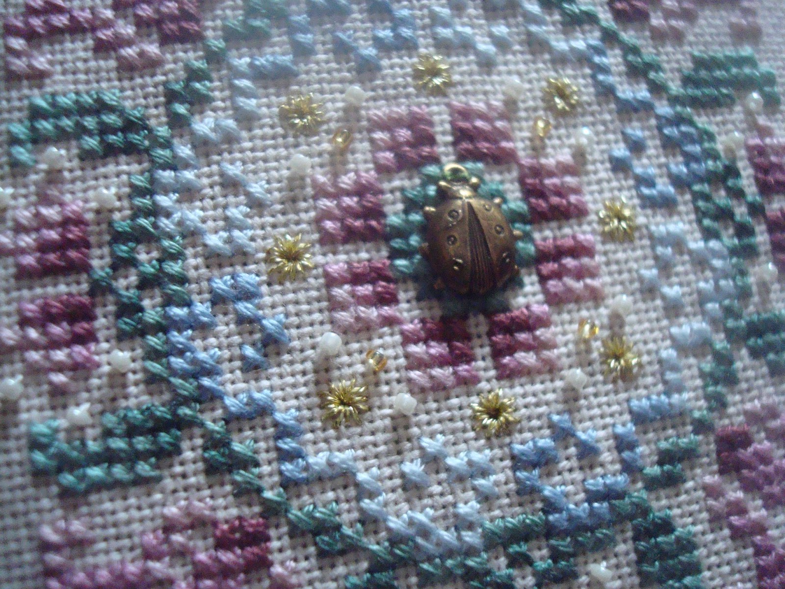 There are four of those beehives to stitch and some corner border too. This is quite a stitch-dense design compared to the previous one and is taking a little longer.