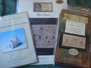 Thanks for the feedback on Bande de Dragons too. I think I will be taking Christine's advice and cutting down what I have already done and completing the segment of the border as a stand alone piece. Then restarting the design on a higher count over one. It's not just the scratchiness of the fabric it's the large scale. I am used to 32 count or 28 count hand-dyed which shrinks. 14 just seems enormous and it's a big design to start with. 25 count over 1 will bring it to a more manageable size.