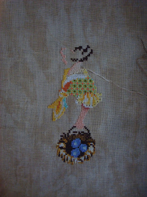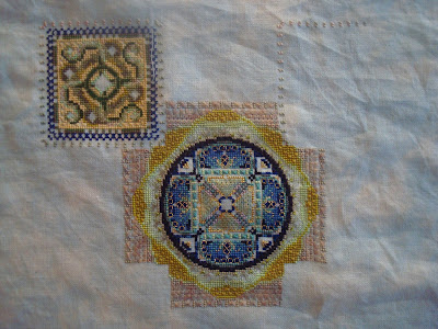 Not a lot of progress this time. I did stitch a lot of Queen's Stitches in the border. Unfortunately the pink in the right garden looks different to the pink in the left which I prefer. So I see another frog in my future. Then I stitched the rice stitches in both gardens. Next month will be speciality stitches in the right garden and in both outer borders.