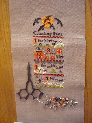 The piece on the left is a new start for the evenings, a giveaway prize from Vickie called Finger Fun 1 by The Sweetheart Tree.  I had no idea why it is called Finger Fun, that sounds more like a knitting project than stitching.  Anyway, the centre is all over one and then there's some blackwork and some borders and it's very pretty and quite tiny.