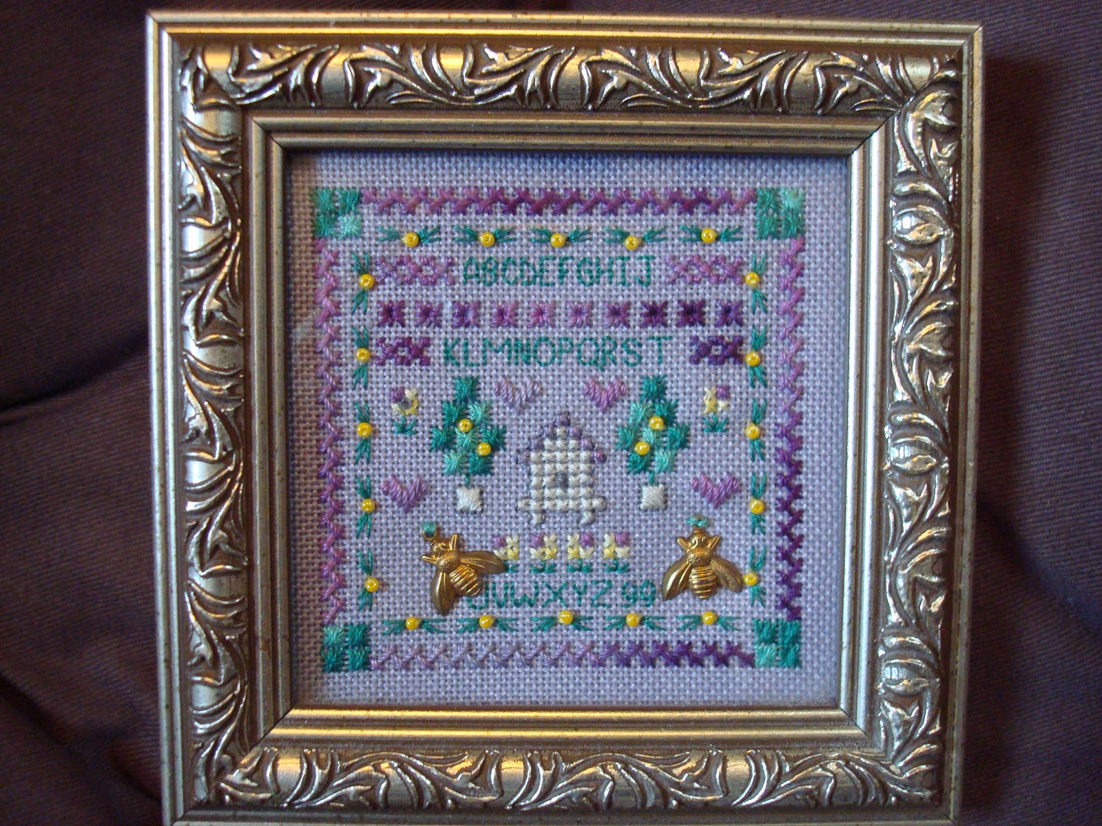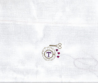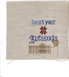 The motif is from World of Cross Stitching magazine and is stitched on 40 count Newcastle over 1. The coin is a 2p piece and shows the stitched area is only an inch wide. As the Giveaway prize was the Doll's House chart my hostess wanted something small scale to send but baulked at the 48 count silk gauze this year. Maybe next year...