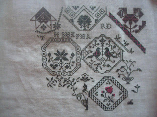 Doesn't the little musician in the bottom left look a bit like the Kokopelli I stitched for Anne a while back? Kokopelli's are Native American and have smaller instruments!