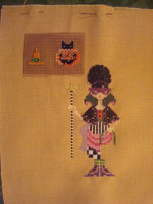I've completed all the cross stitch, metallics and beading. There are a lot of fiddly details like bows and brooms to do. None of which work well with a Small Boy who wants you to read Peppa Pig every five minutes. So I'll leave the finishing until he's back at school.