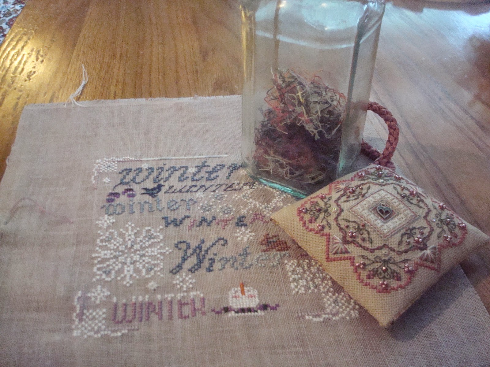 The first one is the latest Just Nan ornament, Royal Blossoms, which has taken much longer than any of the previous four. A total of 35 days altogether doing 30 stitches per day.