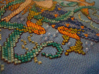 The second Happy Dance is for the July Mermaid from The Year of Magical Stitching by Joan Elliott. I started her last August for a water themed SAL and finished her for the Just One and Joan Elliott SALs this July.